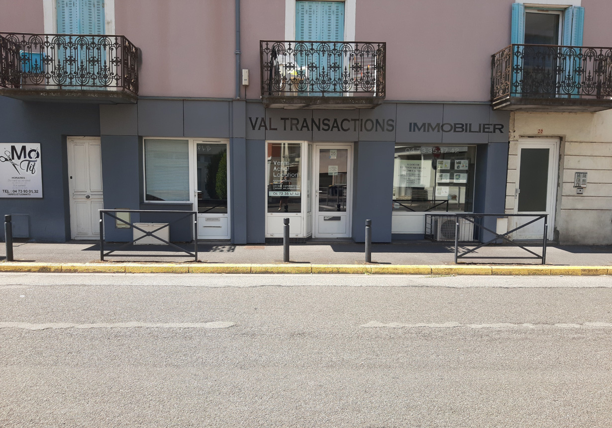 L'agencevous accueilleVous accompagne dans votre projet immobilierVal TransactionTéléphone 04 73 35 47 42Adresse